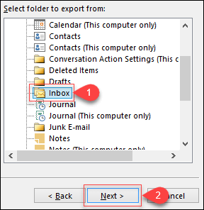 For downloading/saving selected Outlook mailbox folders to the PC, the steps are slightly different: