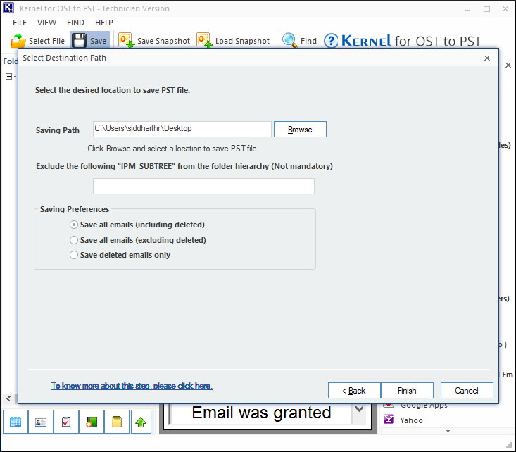 STEP 6: Finally, select the desired location to save the recovered OST mailbox data to PST file on your local machine.