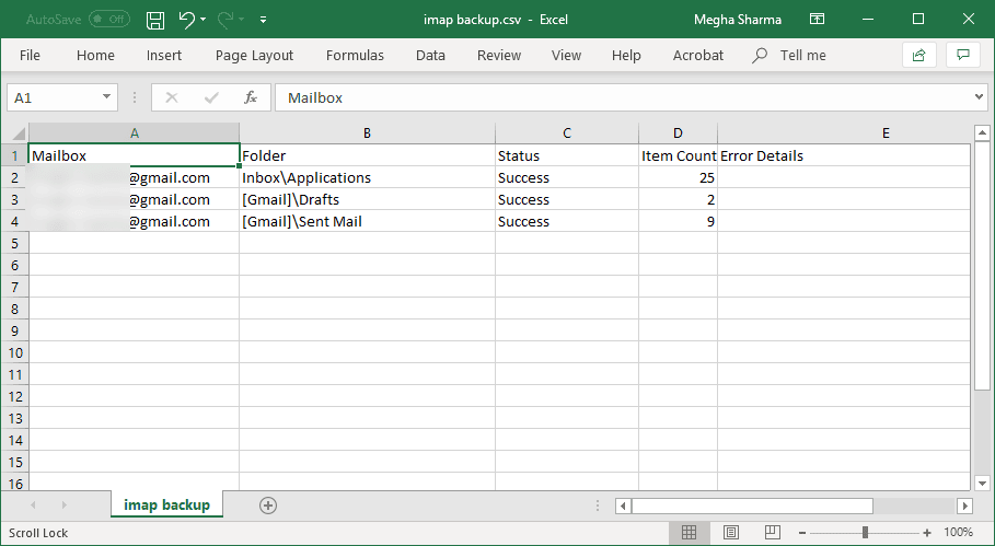 Hence, a single mailbox is successfully backed up from the Source (IMAP enabled Gmail account) to the PST file. Similarly you can back up to other formats as well.