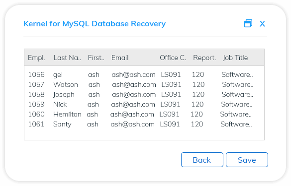 The software works smoothly and efficiently to repair all types of corrupt database errors. It works accurately on severely damaged database files and brings back MySQL database to live-state.